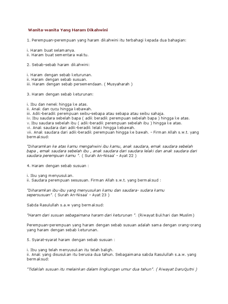 Tingkatan 5 from smkepai.weebly.com Hukum suami yang menelan asi istri apakah jadi mahram buya yahya menjawab. Wanita yang haram dinikahi dalam islam dapat digolongkan menjadi tiga yakni berdasarkan nasab, pernikahan dan persusuan. Terms in this set (7). Wanita yang haram dinikahi dari jalur nasab ada tujuh, yaitu: 4 bibi dari pihak ibu dan. Faktor keturunan 2.faktor penyususan 3.faktor persemendaan. 3 istri dari anak kandung; 6 wanita yang haram dinikahi.