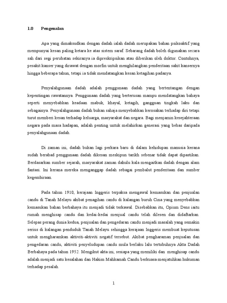 Bahan Sudut Dadah Pdf from reader017.pdfslide.net Dadah dapat dibahagikan kepada lima kumpulan yang besar iaitu kanabis, depresen, halusinogen, stimulan dan narkotik. Penagihan akan menjauhkan diri daripada masyarakat umum dan bergaul hanya dengan kumpulan penagih. Penyalahgunaan dadah banyak memberikan kesan atau akibat yang negatif kepada si penagih dadah. Berdasarkan daripada perbincangan di atas, dapat disimpulkan bahawa punca utama berlakunya penagihan relaps dalam kalangan penagih dadah puspen adalah … kesan daripada sahsiah diri yang kurang mantap dan kurang berkeyakinan diri. Penyalahgunaan dadah akan menyebabkan beberapa kesan kepada penagih. Terdapat beberapa kesalahan tatabahasa yang minimum telah saya betulkan sebelum menyiarkannya. Karangan yang dipaparkan di sini merupakan hasil nukilan anak didik saya. Akibat daripada kesan ini seseorang yang menggunakan dadah akan terus bergantung hidup kepada dadah tersebut dan menyebabkan ketagihan.